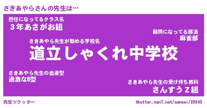 | ヒーロー風カッコイイあだ名 | 『スーパーサキアヤラ』『黄金騎士サキ』 |