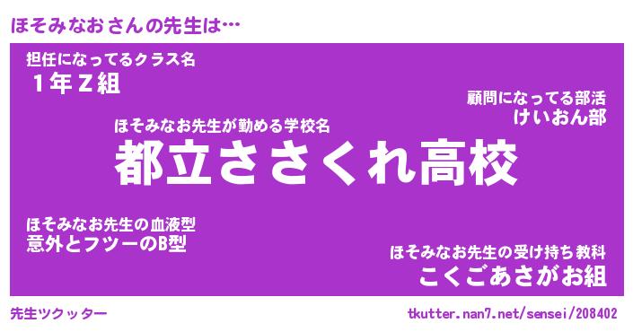 | ヘコむあだ名 | 『ほそもー』『つくし』『ほそを』 |