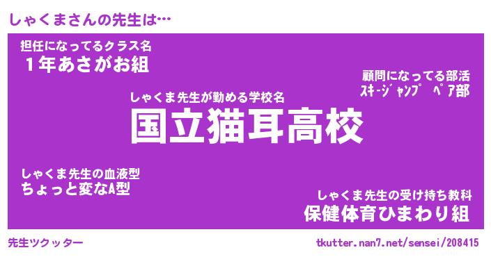 | ヘコむあだ名 | 『しゃにー』『つくし』『しゃっ子』 |