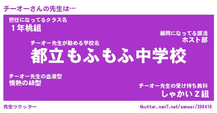 | 肩書あだ名 | 『チーオー店長』『チーオー国家主席』 |