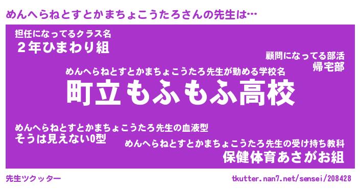 | 学校 | めんへらねとすとかまちょこうたろ校長が勤める学校の名前『県立女子ムンムン高校』 |