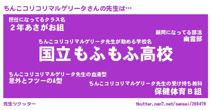 | 欧米人風あだ名 | 『マイケルちんこコリコリマルゲリータ』 |