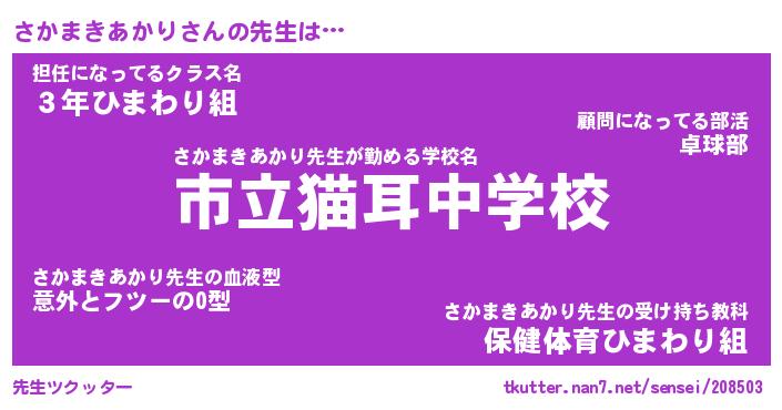 | ヘコむあだ名 | 『さかにー』『豆乳』『さか太郎』 |