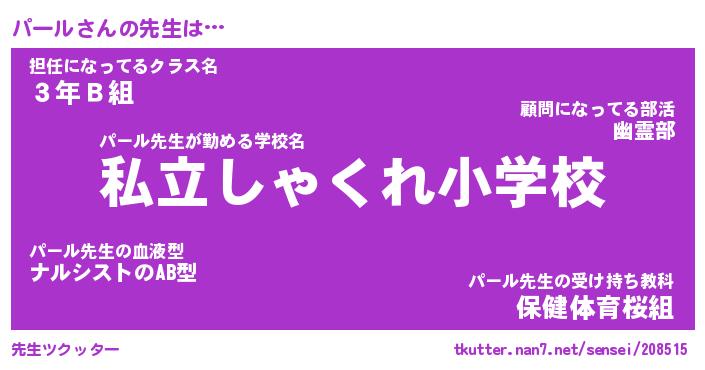 | ヘコむあだ名 | 『パーっふぃ~』『牛乳』『パーお』 |