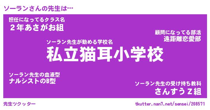 | ファンタジー風あだ名 | 『ソーフェル』『エターナルソーランー』 |