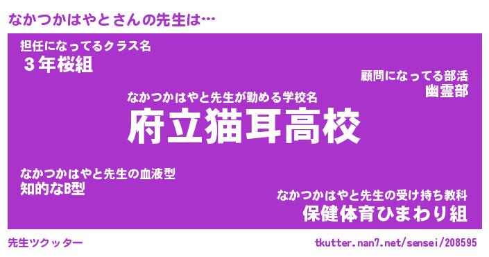 | 伝説のあだ名 | 『封印されし竜騎士なかつかはやと』 |