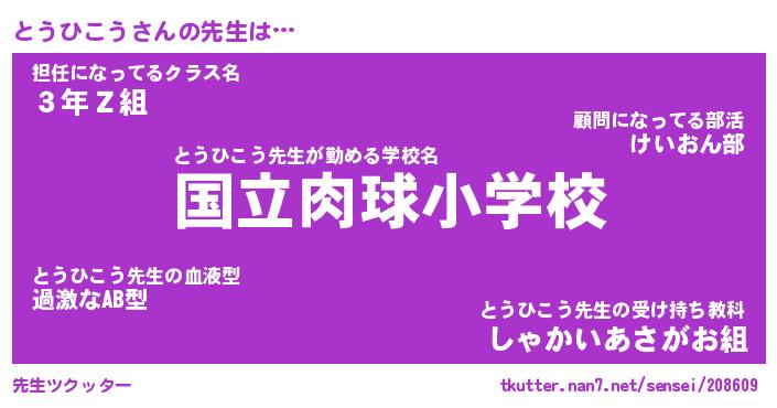 | ファンタジー風あだ名 | 『トウフェル』『エターナルトウヒコウー』 |