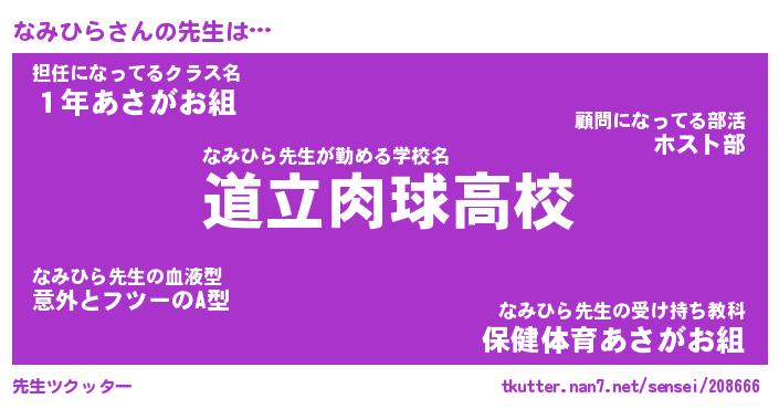 | 意味不明あだ名 | 『ペロリンなみひら』『永久保存なみひら』 |