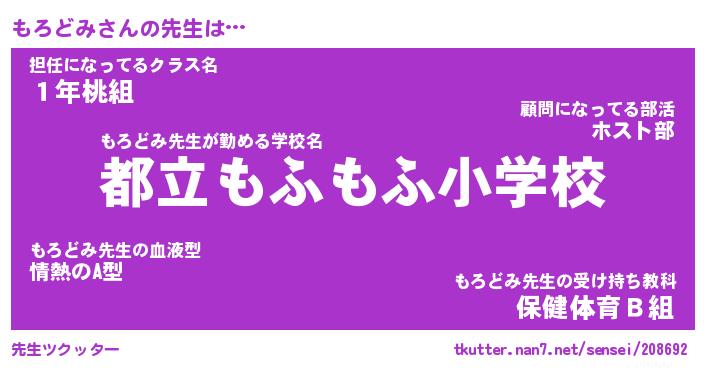 | ヘコむあだ名 | 『もろにゅー』『酢こんぶ』『もろを』 |