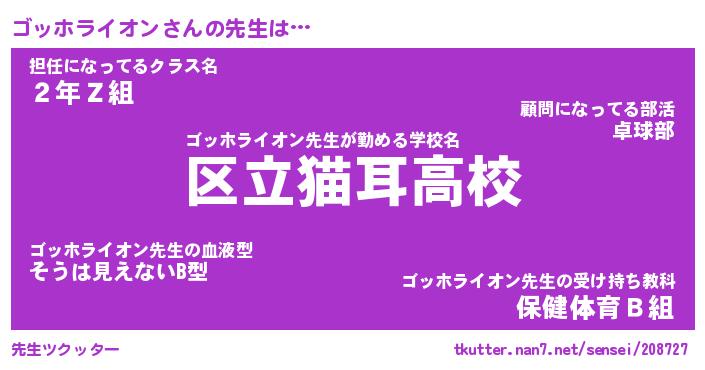 | ヒーロー風カッコイイあだ名 | 『スーパーゴッホライオン』 |