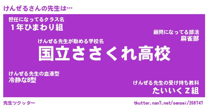| 意味不明あだ名 | 『ペロリンけんぜる』『永久保存けんぜる』 |