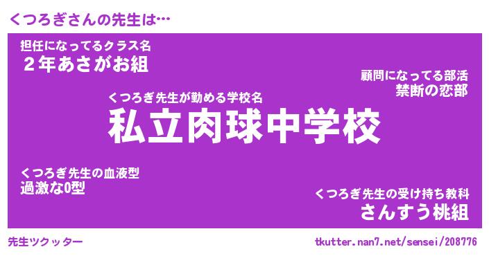 | ファンタジー風あだ名 | 『クツフェル』『エターナルクツロギー』 |
