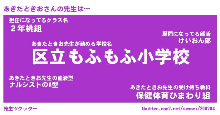 | 肩書あだ名 | 『あきたときお店長』『あきたときお教頭』 |