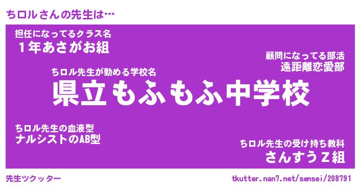 | ファンタジー風あだ名 | 『チロフェル』『エターナルチロルー』 |