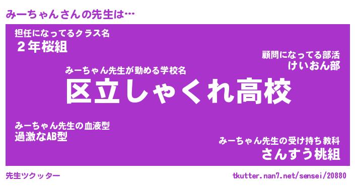 | ファンタジー風あだ名 | 『ミーフェル』『エターナルミーチャンー』 |