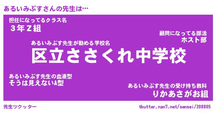| 伝説のあだ名 | 『封印されしスナイパーあるいみぶす』 |