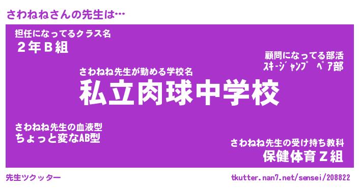 | 意味不明あだ名 | 『ペロリンさわねね』『永久保存さわねね』 |