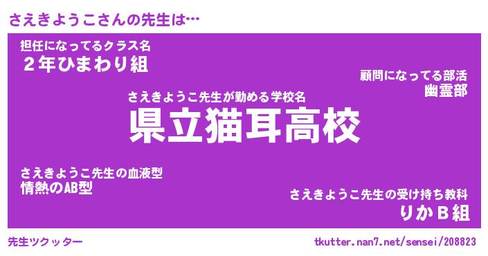 | ポケモン風あだ名 | 『サエチュウ』『サエキダネ』 |