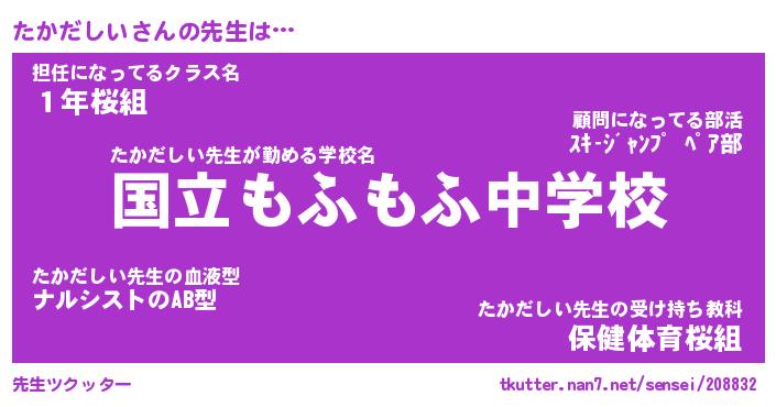 | ポケモン風あだ名 | 『タカチュウ』『タカダダネ』 |
