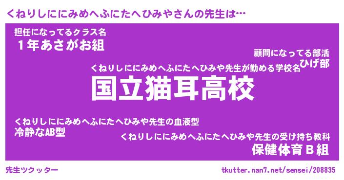 | 学校 | くねりしににみめへふにたへひみや校長が勤める学校の名前『県立メラメラ大学』 |