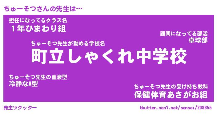 | ヒーロー風カッコイイあだ名 | 『スーパーチューソツ』『炎刃騎士チュ』 |