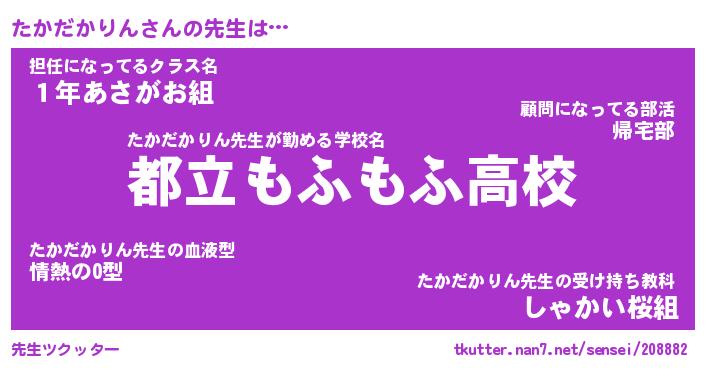 | 女子向けラノベタイトル風あだ名 | 『たかだかりん姫と円卓の騎士』 |