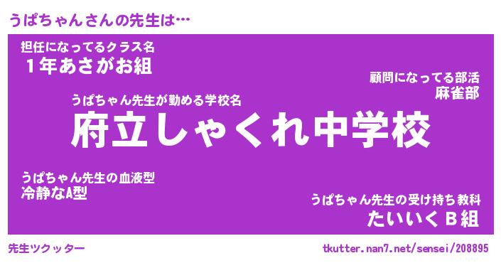 | ヒーロー風カッコイイあだ名 | 『スーパーウパチャン』『幻影騎士ウパ』 |