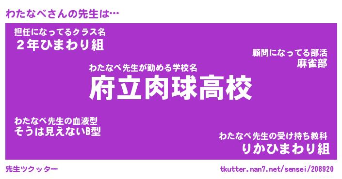 | ヘコむあだ名 | 『わたふぇ~』『牛乳』『わたっぺ』 |