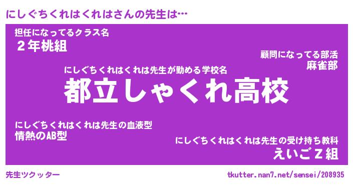 | 肩書あだ名 | 『にしぐちくれはくれは御曹司』 |