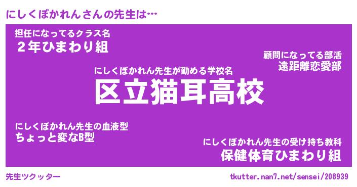 | ポケモン風あだ名 | 『ニシチュウ』『ニシクダネ』 |