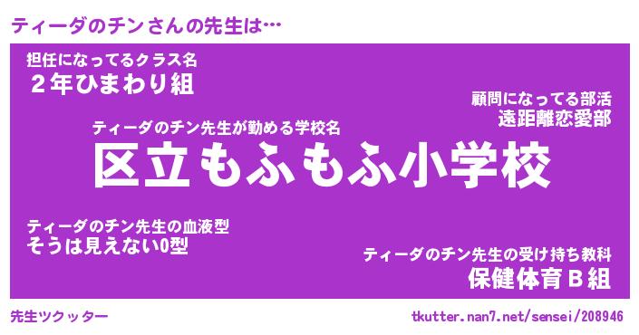 | ヘコむあだ名 | 『ティにゅー』『牛乳』『ティ太郎』 |