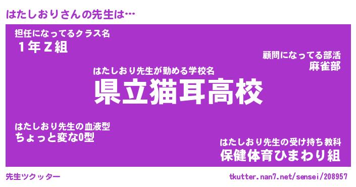| 猫の名前『はたにゃん』性別『♂』 |