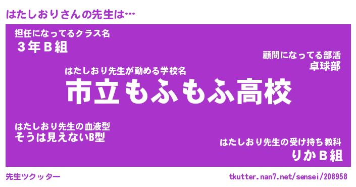 | 肩書あだ名 | 『はたしおり店長』『はたしおり国家主席』 |