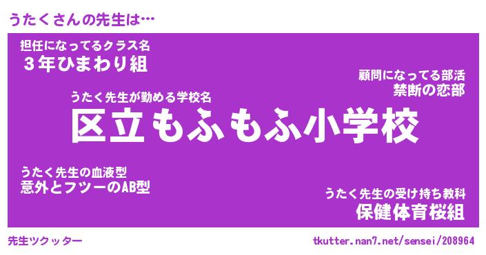 | 意味不明あだ名 | 『ペロリンうたく』『うたくフォーエバー』 |