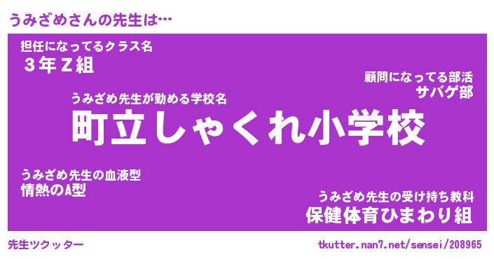 | 意味不明あだ名 | 『ペロリンうみざめ』『永久保存うみざめ』 |