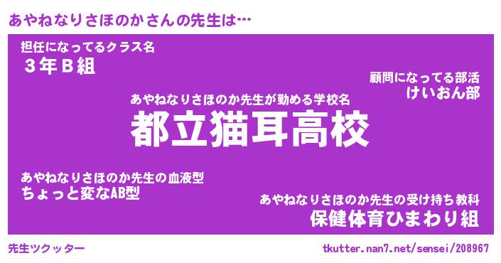 | ポケモン風あだ名 | 『アヤチュウ』『アヤネダネ』 |