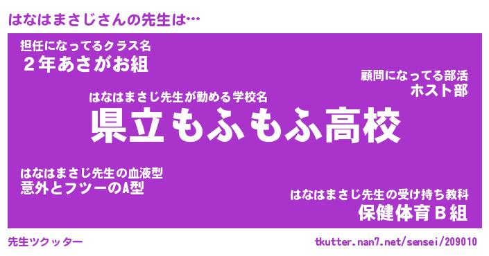 | ツイッター | はなはまさじさんのツイッターID『masyumaro_idle』 |