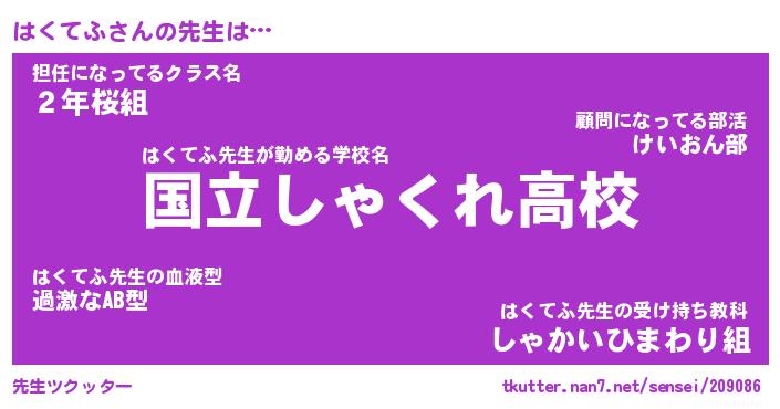 | 意味不明あだ名 | 『ペロリンはくてふ』『永久保存はくてふ』 |