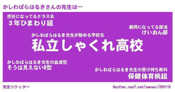 | 胡散臭い通販商品みたいなあだ名 | 『必ず成功する霊験あらたかなお札…その名も「かしわばらはるき」』 |