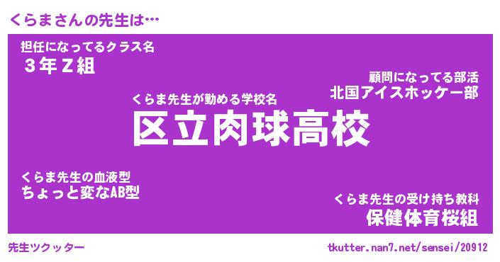 | ヒーロー風カッコイイあだ名 | 『スーパークラマ』『ウルトラくらまマン』 |