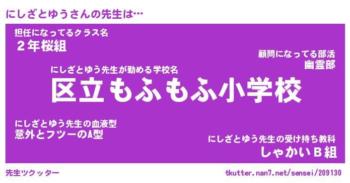 | ポケモン風あだ名 | 『ニシチュウ』『ニシザダネ』 |