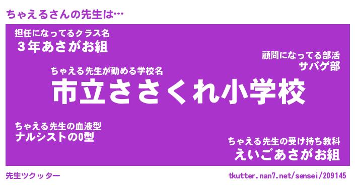 | 意味不明あだ名 | 『ペロリンちゃえる』『永久保存ちゃえる』 |