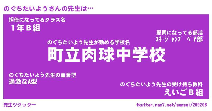| ヒーロー風カッコイイあだ名 | 『スーパーノグチタイヨウ』 |