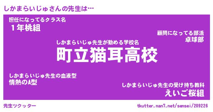 | 意味不明あだ名 | 『ペロリンしかまらいじゅ』 |