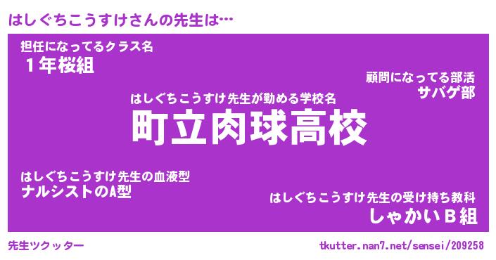 | ヒーロー風カッコイイあだ名 | 『スーパーハシグチコウスケ』 |
