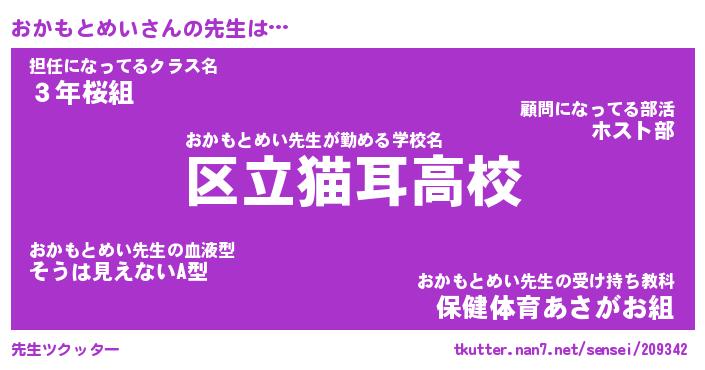 | 肩書あだ名 | 『おかもとめい社長』『おかもとめい先生』 |
