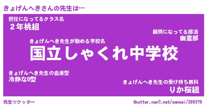 | ヒーロー風カッコイイあだ名 | 『スーパーキョゲンヘキ』『暗黒騎士キョ』 |
