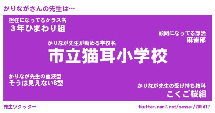 | ヒーロー風カッコイイあだ名 | 『スーパーカリナガ』『天弓騎士カリ』 |
