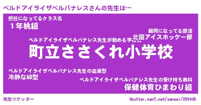 | 意味不明あだ名 | 『ペロリンベルドアイライザベルバナレス』 |