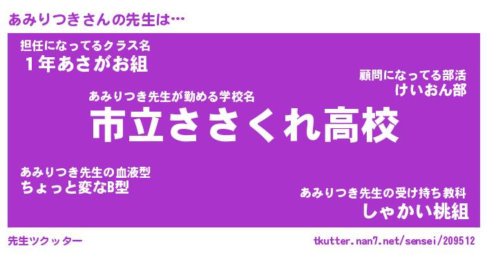 | 肩書あだ名 | 『あみりつき社長令嬢』『あみりつき教頭』 |